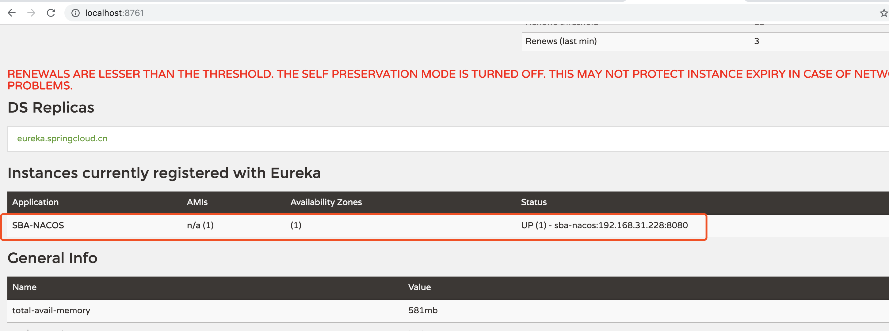 启动一个服务一个服务只注册到Nacos上,发现立即同步到 http://eureka.springcloud.cn/上,如下图所示: