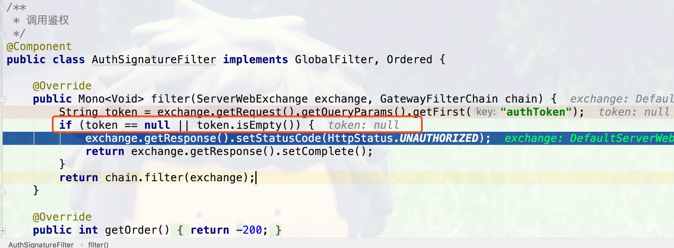 在这里简单定义AuthSignatureFilter实现GlobalFilter