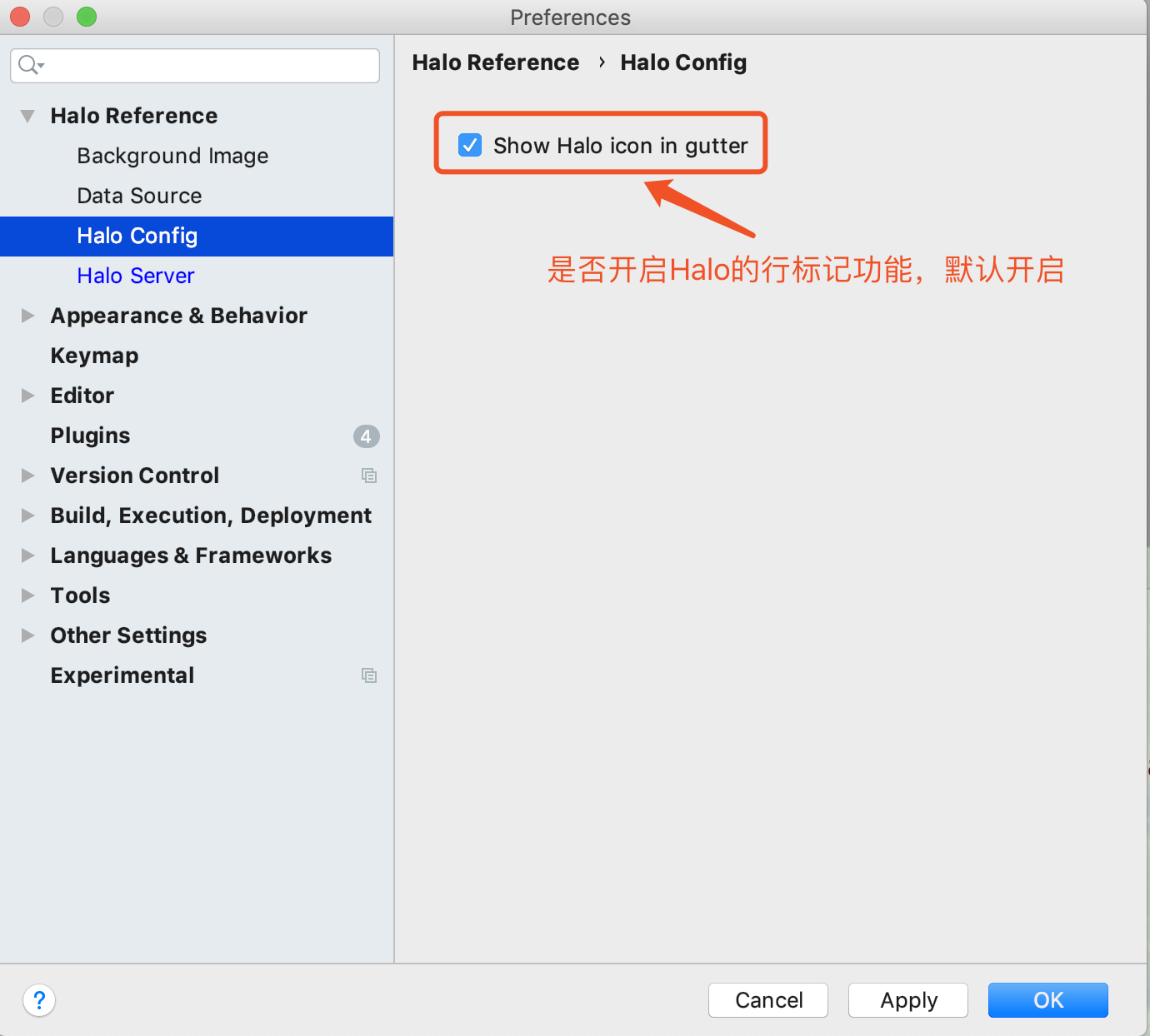 Halo Config是一个Halo Tools提供的IDEA插件配置选项,目前支持是否开启行标记。如下图所示: